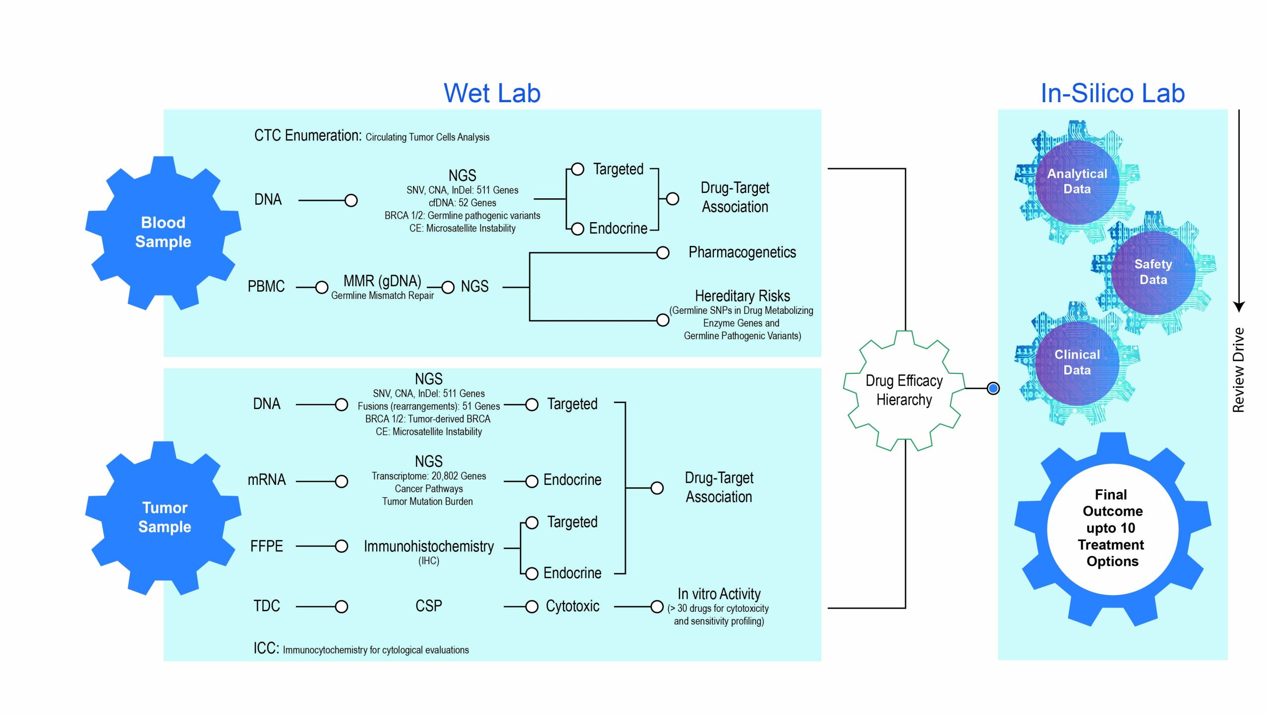 Exacta360™ is a validated and advanced AI-driven test designed for patients with advanced or difficult-to-treat cancers, especially those unresponsive to standard therapies. By conducting comprehensive, multi-analyte tumor profiling—including analyses of RNA, DNA, circulating tumor cells (CTCs), proteomics, and live cell chemo-response—Exacta360™ provides detailed insights into tumor mechanisms. This in-depth analysis informs the selection of personalized anti-cancer treatment regimens, helping oncologists identify the most effective therapies tailored to each patient’s unique cancer profile.